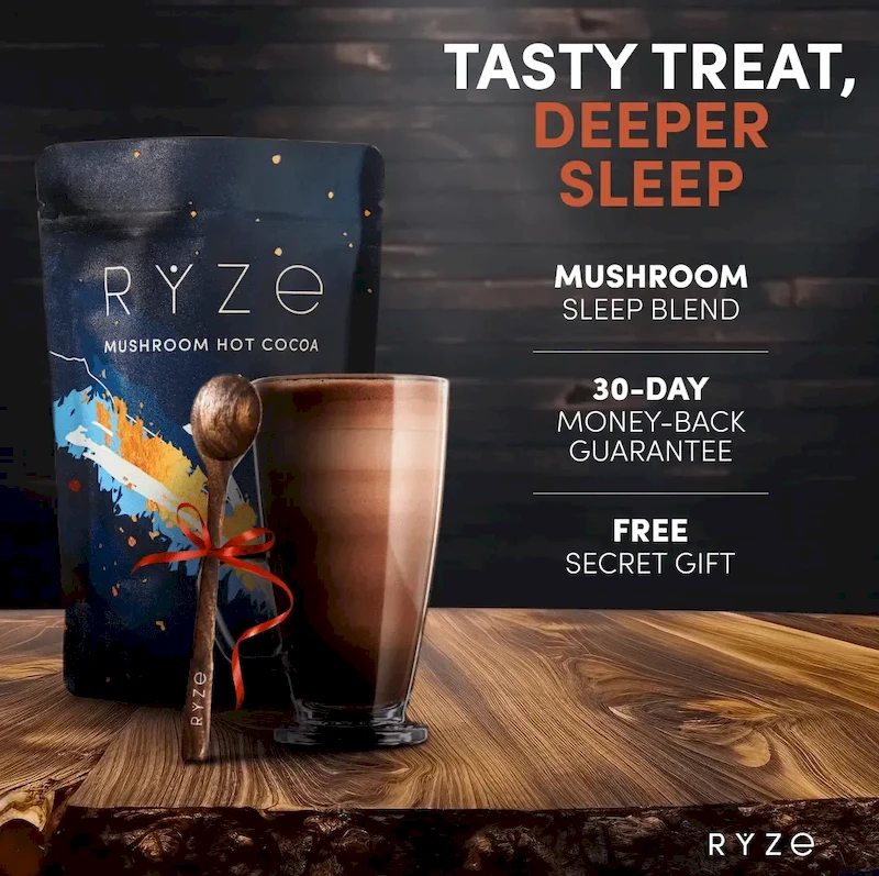 RYZE Mushroom Hot Cocoa is powered by sleep-enhancing superfoods that help you fall asleep and stay asleep all night long. All without added sugar, only 40 cal and just as delicious as regular Hot Chocolate.